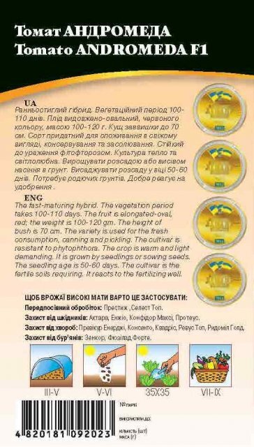 World of Seeds ukraine Упаковка МініТермін дозрівання РаннійКолір ЧервонийВиробник World of SeedsТомат Андромеда 0,1г. WoS