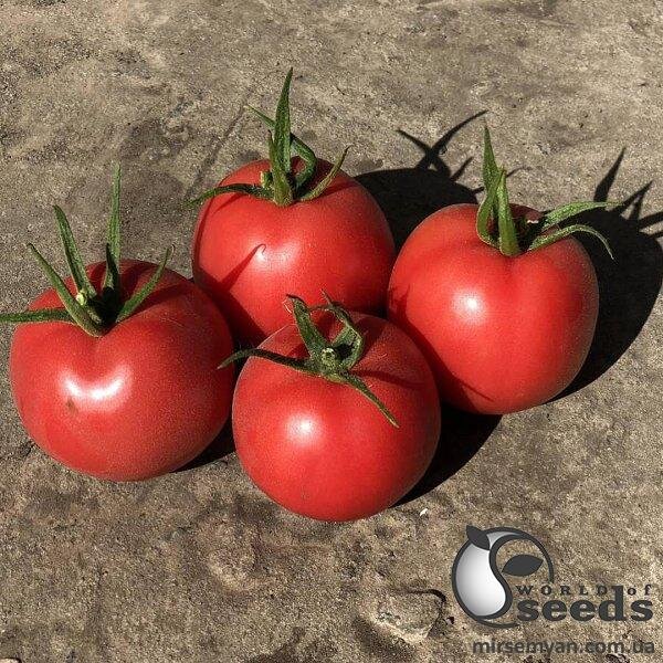 Високорослий розовоплодний томат, призначений для ринку свіжих овочів, свіжого споживання. Для обробітку в теплицях і на відкритому грунті. Плод: округло-плескатої форми плоди з високою якістю. Має гладку блискучу поверхню та насичене рожеве забарвлення. Маса томату складає 230-250 грам. Томати з щільною м'якоттю, має відмінний солодкий смак і аромат. Щільність плодів дозволяє транспортувати їх на далекі відстані. Хороша лежкість дозволяє плодам зберігається без втрати товарності.