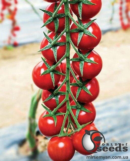 Ранній, високопродуктивний індетермінантний чері-томат. Підходить для вирощування у відкритому та закритому ґрунті. Вирівняні кисті з рівномірно розташованими плодами. Плоди насичено яскраво-червоного кольору, середньою вагою 20-25 г. Відмінний смак, високий вміст цукрів Плоди щільні, стійкі до розтріскування. Характерно концентроване дозрівання, висока товарність та лежкість. Призначений для кистьового та окремого збору. Пластичний, стабільно високий урожай у різних умовах. Відмінно зав'язує як у спекотних, так і прохолодних умовах. Універсального використання, як для свіжого ринку, так і для консервування. C,D,E) IR: Ma, Mi, Mj / TYLCV / Ss