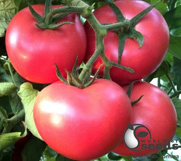Середньоранній, 65-70 днів від висадки розсади. Високопродуктивний тепличний томат. Рожевий. В середньому на одному пензлі 4-5 стандартних товарних плодів вагою 220-250 грам. Гарний округло-плескатої форми, приємний насичений рожевий колір. Плоди спочатку не мають зеленої плями у плодоніжки. Плоди красиві, солодкі та смачні. Рослина компактна, невибаглива у догляді, з короткими міжвузлями. Відмінне завантаження плодами, стабільне формування кистей. Дуже хороша щільність та однорідність плодів. Не схильні до розтріскування. Продуктивний, високотоварний та якісний.