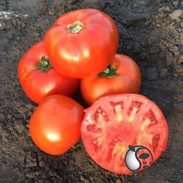 Новий врожайний помідор. Ранній – 60-62 днів від висадки розсади. Сильна рослина, гарний листовий апарат, гарне укриття плодів. Стандартні плоди округло-плескатої форми. Характерна висока однорідність, середня вага 250-300 г. Привабливий яскраво-червоний колір. Відмінні смакові якості. Без зеленої плями у плодоніжки. Щільні плоди, не розтріскується. Добре зберігається та транспортується. HR: ToMV/Va:0/Vd:0/Fol:0,1/Ss; IR: TSWV:TO