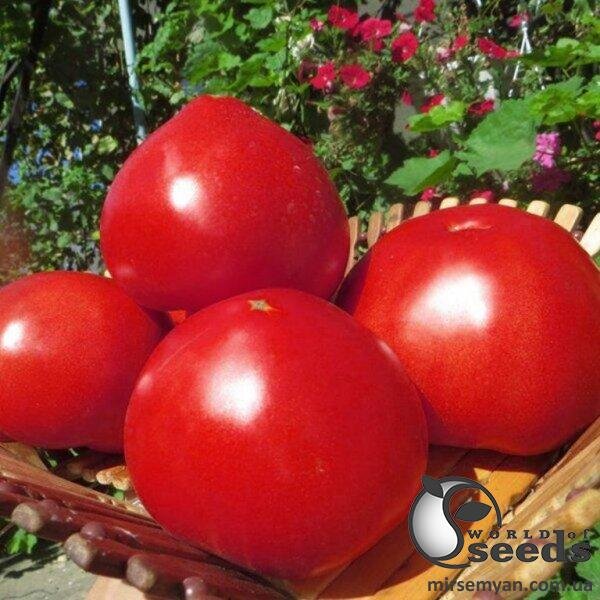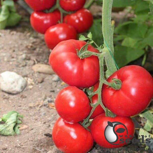 Новий великоплідний, дуже продуктивний помідор, середньораннього терміну дозрівання. Рослини відкриті, добре вентильовані, витривалі, добре переносять стресові умови. На китиці в середньому 4 плоди, вагою 250-300 грам. Однорідного насичено червоного кольору. Одинакової плоско-округлої форми протягом усього сезону. Вишуканий смак. Завдяки щільності добре лежить і транспортуються без втрати товарних та смакових якостей. Підходять для вирощування у будь-яких типах теплиць. Чудовий пакет стійкостей.