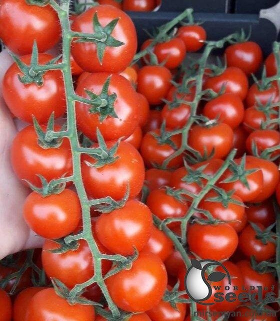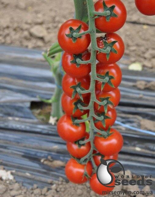 Плоди ідеально круглі з калібром 35-36 мм і вагою 25 г. Щільно прилеглі до стовбура, створюють єдину кисть яскраво-червоного кольору середньою вагою 360 г. Відрізняються високим ступенем лежкості. n Плодоніжки залишаються довго свіжими, як свіжо зібрані.
