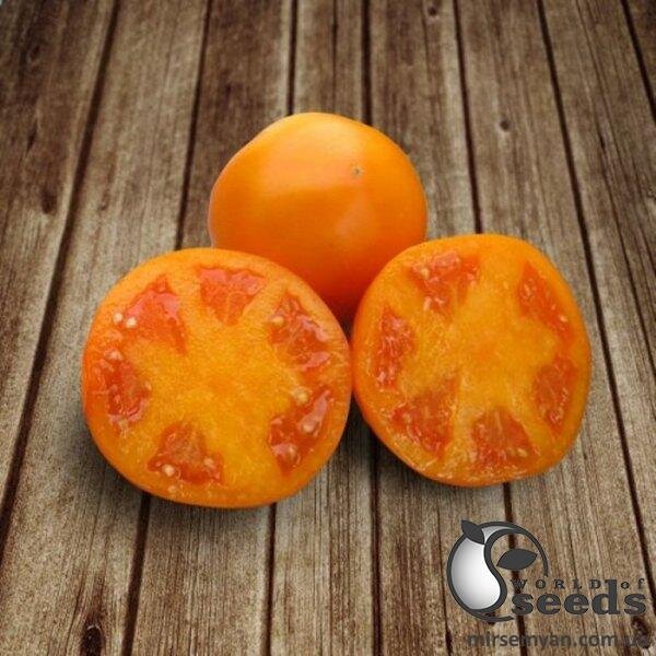 Високопродуктивний середньопізній томат детермінантного типу, створений для ринку свіжих овочів та переробки на сік. Гарантує високий прибуток за рахунок товарного вигляду та солодкого смаку. Плод: великі, однорідні, високотоварні плоди округлої форми з привабливим золотисто-жовтим забарвленням. Структура щільна, дуже м'ясиста та цукриста. Маса помідора становить 220-250 грамів, за хороших умов досягає 350 грамів. Дуже насичений смак, солодкий, з приголомшливим ароматом. Не розтріскуються, відмінно переносять транспортування без пошкоджень. Дуже добре зберігається без втрати товарних та смакових властивостей.