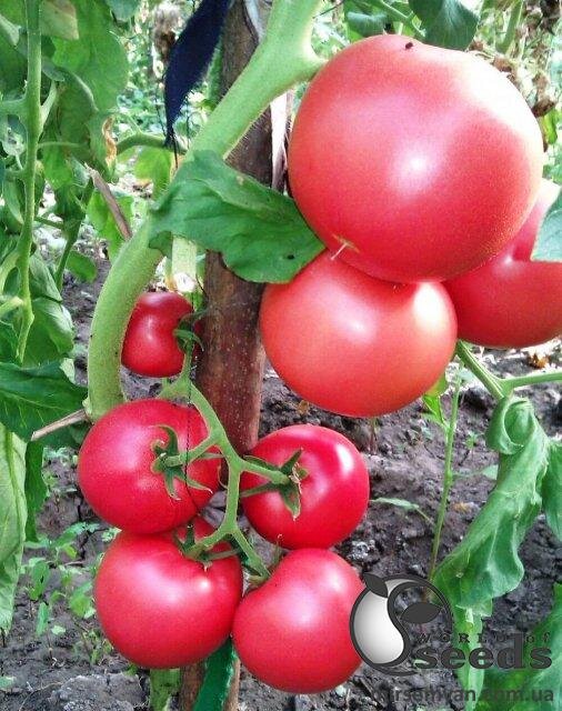 Плід: дуже великі плоскоокруглі плоди з відмінним товарним виглядом. Має насичене рожеве забарвлення, біля зеленої плями. Маса одного помідора в середньому становить 300-320 грам, але за добрих умов можуть досягати ваги – 500-550 грам. Має дуже м'ясисту, цукрову структуру. Неймовірно солодкий та ароматний.