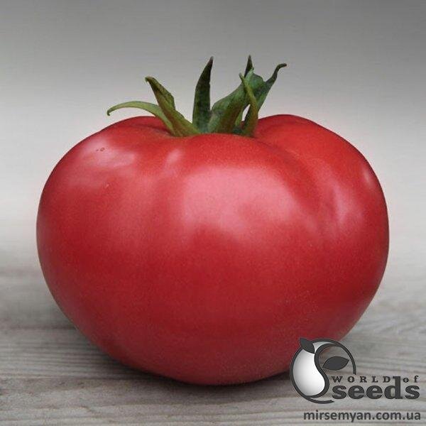 Плід: дуже великі плоскоокруглі плоди з рівною і гладкою поверхнею привабливого рожевого забарвлення і не має зеленої плями. Щільна та цукрова структура з приголомшливим солодким смаком та ароматом. Маса помідора становить 320-350 г. Плоди високотранспортабельні, не розтріскуються навіть в умовах високої вологості. Відмінні товарні характеристики.