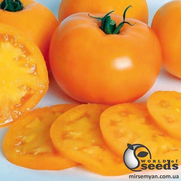 Високопродуктивний великоплідний томат індетермінантного типу з раннім терміном дозрівання, створений для ранньої свіжої реалізації. Чудовий унікальний томат, який принесе високий прибуток. Для обробітку в теплицях з плівки, підходить для першого і другого обороту. Плід: великі, округло-плескаті плоди з щільною консистенцією. Поверхня гладка, має привабливий золотисто-жовтий колір. Містить багато каротину та корисних вітамінів. Маса одного помідора становить 250-300 г. Неймовірні смакові якості і висока товарність томатів. Не розтріскуються плоди і не пошкоджуються, відмінно переносять транспортування на далекі відстані.