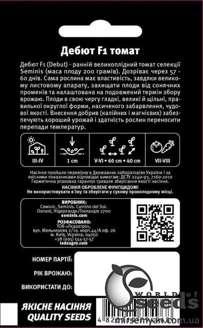Seminis netherlands Упаковка МініТермін дозрівання РаннійВиробник SeminisТомат «Дебют» F1 100 семена L (Семініс / Seminis)