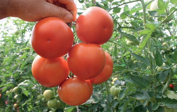 Томат яскраво-червоного відтінку, блискучі, має округлу форму, щільну текстуру, пофарбований однорідно як усередині, так і зовні, зелена пляма у плодоніжки відсутня.