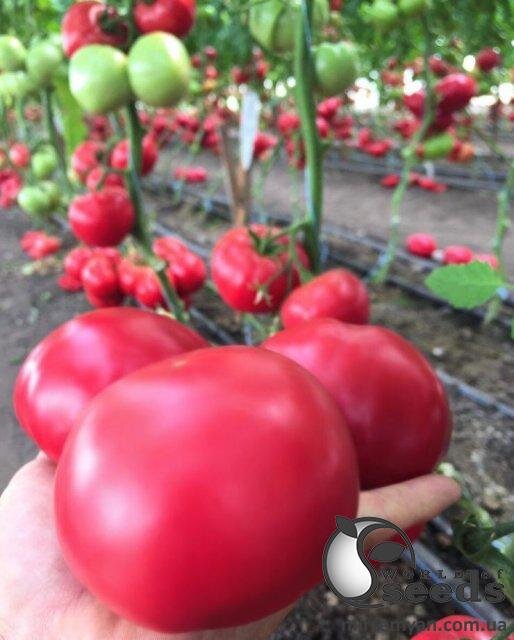 Перший полуде по ранньостиглості серед тепличних помідорів. Концентрований ранній урожай – високий дохід. Компактна рослина, короткі міжвузля. Формує 4-6 плодів величезного розміру. Стандартні плоди вагою 220-250 г та більше. Хороший насичений рожевий колір Плоди щільні, стійкі до розтріскування. Відмінні результати у плівкових теплицях на перший оборот. Широка лінійка стійкостей: HR: Fol: 0,1 (US1, 2); Pf:A,B,C,D,E; ToMV:0,1,2; Va:0 (US:1),Vd:0 (US:1) IR: Ma,Mi,Mj