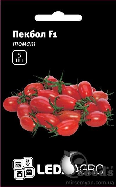 Смачні помідорчики масою 20-25 г мають красиву округло-витягнуту форму (лампочка) і яскравий червоний колір. Пекбол F1 генетично стійкий до вірусів, ідеальний для вирощування в теплицях і у відкритому грунті. Томати мають відмінні смакові якості, добре транспортуються та мають тривалий термін зберігання.