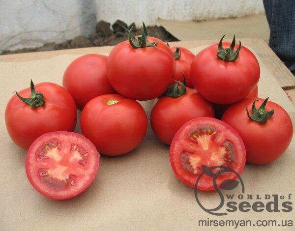 Плоди - масою 160-190г ., багатокамерні, привабливого інтенсивно червоного забарвлення, дозрівають одночасно відразу кілька кистей, придатний для вирощування в першому метрообороті.