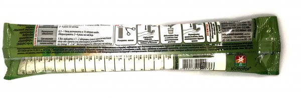 Добриво кристалічне "Чистий Лист" для помідорів та перцю 100 г. (Kvitofor) Макроелементи (%): всього N - 16, P205 - 8, K2О - 18,7; Мезоелементи (г/кг): S - 61, MgO - 3,2; Мікроелементи (г/кг): Бір (В) - 0,31, Залізо (Fe) - 1,6, Марганець (Мn) - 0,34, Цинк (Zn) - 0,32, Мідь (Cu) - 0, 23, Молібден (Мо) – 0,03, Кобальт (Со) – 0,02. Вітаміни (мг/кг): Тіамін (В1) 110, Аскорбінова кислота (С) 520, Нікотинова кислота (РР) 210. Торгова марка «Чистий Лист» представляє ідеальне добриво, що дає найкращий результат: - висока якість плодів та квітів; - рання та високоякісна продукція завдяки збалансованому складу NPK; - відсутність хлорозу завдяки наявності заліза та магнію; - Повна розчинність навіть у холодній воді; - компенсує дефіцит макро- та мікроелементів; - ефективність та простота застосування; - Сумісно з пестицидами та іншими добривами. Застосування продукції ТМ «ЧИСТИЙ ЛИСТ» - найкращий спосіб підтримки родючості ґрунту. Добриво забезпечує повноцінне харчування для рослин і може бути використане в будь-якій системі поливу (крапельне зрошення, дощування, гідропоніка тощо). Підвищує врожайність та якість овочевої продукції (розмір, форму, колір плодів). вміст у них корисних речовин. Забезпечує рослину повноцінним харчуванням, компенсує дефіцит макро та мікроелементів. Стимулює швидке, пропорційне зростання, ранній початок плодоношення. Відмінно поєднується з органічними добривами. Запобігає опаданню бутонів, квіток зав'язей. Підвищує опірність до хвороб, несприятливих погодних умов. Запобіжні заходи: Рекомендується виконувати роботи у рукавичках. При попаданні на шкіру промити водою з милом. Не допускати потрапляння в їжу та всередину організму. При попаданні у вічі промити великою кількістю води. При потраплянні в організм випити кілька склянок води, і викликати блювоту. Звернутися до лікаря. Рекомендації щодо зберігання: Зберігати у сухому, темному, недоступному для дітей місці окремо від ліків та харчових продуктів при t від -20 до +40°С. Термін придатності до споживання: 36 місяців. не доступному для дітей місці окремо від ліків та харчових продуктів при t від -20 до +40 °С. Термін придатності до споживання: 36 місяців. не доступному для дітей місці окремо від ліків та харчових продуктів при t від -20 до +40 °С. Термін придатності до споживання: 36 місяців.