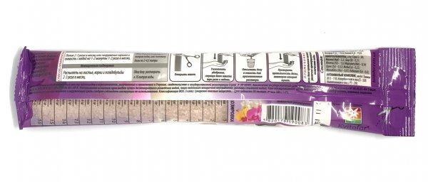 Добриво кристалічне "Чистий Лист" для орхідей 100 г. (Kvitofor) Торгова марка «Чистий Лист» представляє ідеальне добриво, що дає найкращий результат: - висока якість плодів та квітів; - рання та високоякісна продукція завдяки збалансованому складу NPK; - відсутність хлорозу завдяки наявності заліза та магнію; - Повна розчинність навіть у холодній воді; - компенсує дефіцит макро- та мікроелементів; - ефективність та простота застосування; - Сумісно з пестицидами та іншими добривами. Застосування продукції ТМ «ЧИСТИЙ ЛИСТ» - найкращий спосіб підтримки родючості ґрунту. Добриво забезпечує повноцінне харчування для рослин і може бути використане в будь-якій системі поливу (крапельне зрошення, дощування, гідропоніка тощо). Склад: азот-16%, фосфор-7%, калій-18,5%, залізо-0 7%, магній-2,0,%, сірка-58%, бор-0,2%, марганець-0,3%, мідь-0,05%, цинк-0,1%, молібден-0,01%, кобальт-0,01 Запобіжні заходи: Рекомендується виконувати роботи в рукавичках. При попаданні на шкіру промити водою з милом. Не допускати потрапляння в їжу та всередину організму. При попаданні у вічі промити великою кількістю води. При потраплянні в організм випити кілька склянок води, і викликати блювоту. Звернутися до лікаря. Рекомендації щодо зберігання: Зберігати у сухому, темному, недоступному для дітей місці окремо від ліків та харчових продуктів при t від -20 до +35°С. Термін придатності до споживання: 36 місяців. При потраплянні в організм випити кілька склянок води, і викликати блювоту. Звернутися до лікаря. Рекомендації щодо зберігання: Зберігати у сухому, темному, недоступному для дітей місці окремо від ліків та харчових продуктів при t від -20 до +35°С. Термін придатності до споживання: 36 місяців. При потраплянні в організм випити кілька склянок води, і викликати блювоту. Звернутися до лікаря. Рекомендації щодо зберігання: Зберігати у сухому, темному, недоступному для дітей місці окремо від ліків та харчових продуктів при t від -20 до +35°С. Термін придатності до споживання: 36 місяців.