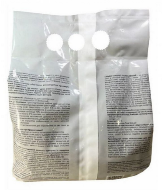 Сульфат амонію гранульований - це добриво, яке має в складі азоту в амонійній формі (21%), а також містить у собі сірку у вигляді сульфату (24%). Сульфат амонію — універсальне добриво, яке можна використовувати для живлення всіх культур: озимих і ярих зернових, технічних, коренеплодів тощо, а також використовувати в овочівництві та садівництв. Добриво сприяє підкислення грунту, підвищує кількість білка в плодах і ягодах, а також збільшує загальну врожайність на 20-30%.