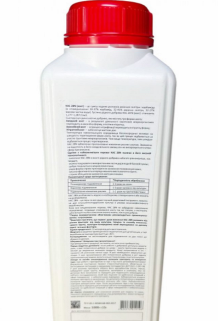 Ця каністра об'ємом 1 літр є зручною для маленьких або середніх ділянок, дозволяючи аграріям з легкістю маніпулювати добривом та застосовувати його за потребою. Це робить КАС (N28+S2) ідеальним вибором для тих, хто шукає ефективне, але легке у використанні добриво для своїх агропотреб.