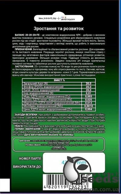Добрива ГроГрін (GroGreen) Баланс NPK 20-20-20 25 г.