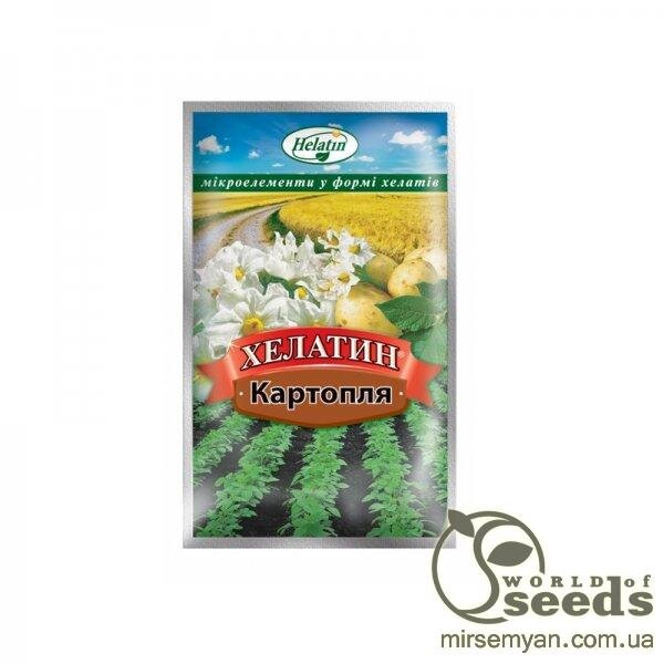 Хелатин – комплекс мікроелементів у хелатній формі, необхідних для успішного вирощування рослин, отримання якісного врожаю, збалансованого мінерального харчування. Роль мікроелементів у харчуванні рослин багатогранна. Мікроелементи захищають рослини від багатьох захворювань, посилюють процеси запилення, плодоутворення, засвоювання поживних речовин. Мікроелементи підвищують активність ферментних систем у рослинному організмі. За рахунок цього підвищується врожайність, вміст вітамінів, цукру в плодах та овочах, покращуються декоративні властивості рослин. Унікальні композиції мікроелементів у складі добрива Хелатін® допоможуть отримати якісний урожай як аматору, так і професіоналу. Використовується для картоплі. Вирішення проблем якщо є: повільне зростання, міжвузля короткі, постійно в'яне верхнє листя, гниє верхній ґрунт,