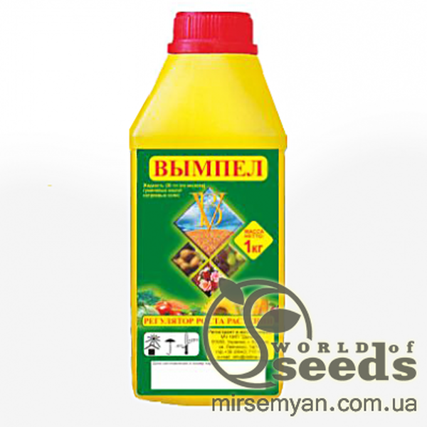 ВИМПЕЛ® – комплексний природно-синтетичний препарат контактно-системної дії для обробки насіння та вегетуючих рослин. Стимулятор зростання. Низькомолекулярні поліетиленоксиди легко проникають у тканини, виконуючи функцію транспортного агента для всіх препаратів, що застосовуються разом із стимулятором росту ВИМПЕЛ®. Також ПЕО з низькою молекулярною масою структурують вільну внутрішньоклітинну воду, підвищуючи її біологічну активність. Прискорюють процеси зростання та фотосинтезу; регулюють транспірацію та інтенсивність мінерального харчування. Продукти розпаду ПЕО - етаноламін є елементами живлення рослинної клітини. Присутність відмитих солей гумінових кислот посилює коренеутворення та покращує живлення, що сприяє активізації росту надземної частини рослин. Адаптоген, кріопротектор, термопротектор. Спільна дія двох полімерів підвищує осмотичний тиск, спрямований усередину клітини, покращує білковий обмін, який виявляється у підвищенні кількості цукрів у рослинах. Ці зміни роблять організм більш стійким до несприятливих факторів навколишнього середовища, рослини краще переносять підвищені та знижені температури, низьку вологість повітря. Антистресант. На обробку пестицидами культурні рослини реагують синтезом специфічних стресових білків та ферментів, які нейтралізують отриманий негативний вплив. Низькомолекулярні ПЕО прискорюють обмінні процеси в тканинах рослин, що проявляється у інтенсивнішому синтезі антистресових речовин, що у свою чергу знімає фітотоксичність після обробки пестицидами. Інгібітор хвороб. Поліетиленоксиди, внесені з фунгіцидами, зневоднюють грибки та бактерії. Висушування мікробної клітини, з одного боку, знижує її біологічну активність, з другого підвищує її сприйнятливість до дії препарату. За рахунок підвищення імунітету ураження рослин знижується в 1,5-2 рази, що зменшує кратність обробок рослин фунгіцидами. Активатор ґрунту. Активізує кореневі виділення рослин та діяльність ґрунтових мікроорганізмів, які виявляються у посиленні виділення СО2 та фіксації азоту. Підтримує позитивний баланс гумусонакопичення. Прилипатель. ПЕО з високою молекулярною масою мають високу плівкоутворювальну здатність. Завдяки цьому ВИМПЕЛ® забезпечує закріплення бакових препаратів на поверхні насіння та листя, що підвищує ефективність біопрепаратів, пестицидів та мікродобрив. При тривалому (до 2-х місяців) знаходженні в умовах нестачі вологи в ґрунті, насіння піддається негативному впливу провокаційної вологи, що призводить до їх цвіління. Сформована оболонка захищає насіння від провокаційної вологи, зберігаючи його схожість. Додавання до води стимулятора росту ВИМПЕЛ покращує технологічні властивості води. У цьому змінюються фізичні властивості робочого розчину: значно зростає масовий медіанний діаметр крапель (на 26-29%); зменшується сукупна частина крапель, які схильні до стікання та зносу на 18,7-21,9%. Діючі речовини, що входять до складу стимулятора росту рослин ВИМПЕЛ®, посилюють дію один одного та забезпечують препарату багатофункціональність. Тому він має властивості стимулятора росту, адаптогену, кріопротектора, термопротектора, антистресанта, прилипача, інгібітора хвороб та активатора ґрунту. Препарат підвищує якість продукції, врожайність (збільшується на 10-30%) і не потре