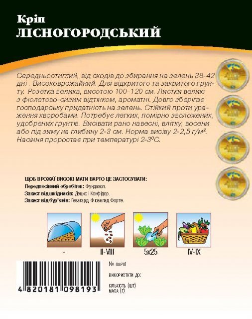World of Seeds ukraine Упаковка МініТермін дозрівання СередньораннійКолір ЗеленийВиробник World of SeedsКріп Лісногородський 20г. WoS