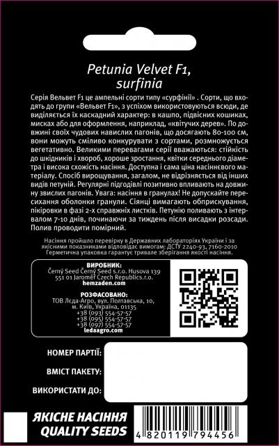10 Cherny Упаковка МініВиробник Cherny (Чехія)Петунія "Вельвет" F1 5 семена L (Cherny Чехія)