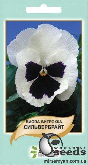 Рослини з великими білими квітками з темно-фіолетової плями в центрі. Цвітіння рясно і тривале з травня до вересня. Благолюбна, добряче росте на сонці і на південь. Використовується для робітників, квітників, балконних ящиків та контейнерів. Віола Вітрокка „Сільвербрайт” Для отримання рясного та тривалого цвітіння з весни насіння сіють наприкінці червня – на початку липня попереднього року; для літнього цвітіння насіння сіють під зиму або напровесні на гряди або парники. До появи сходів посіви утримують вологими і в тіні, при температурі 18-24 ° С сходи з'являються через 7-12 днів. При рідкому посіві пікірування не потрібне. Рослини з великими білими квітками з темно-фіолетової плями в центрі. Цвітіння рясно і тривале з травня до вересня. Благолюбна, добряче росте на сонці і на південь. Використовується для робітників, квітників,